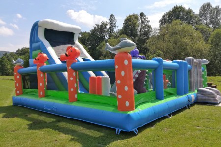 skákací hrady, skluzavky, aktivní centra, komba, vodní, fotbalové i elektrické atrakce, trampolíny